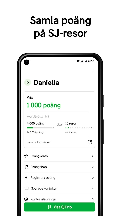 Покупайте билеты на поезд и пригородные билеты, следите за поездкой и получайте баллы за поездки в SJ.