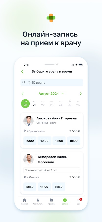Больше никаких звонков и ожидания на линии. Все свободные слоты врача у вас перед глазами. Выбирайте удобное время и записывайтесь. Это займет около 30 секунд.
