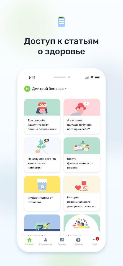 Ваша медицинская карта со всеми назначениями и результатами анализов всегда под рукой. Теперь не нужно переживать, что бумажка с названием препарата потеряна, хотя вроде бы точно висела на холодильнике.