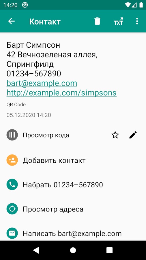 • контактные данные (MeCard, vCard, vcf);