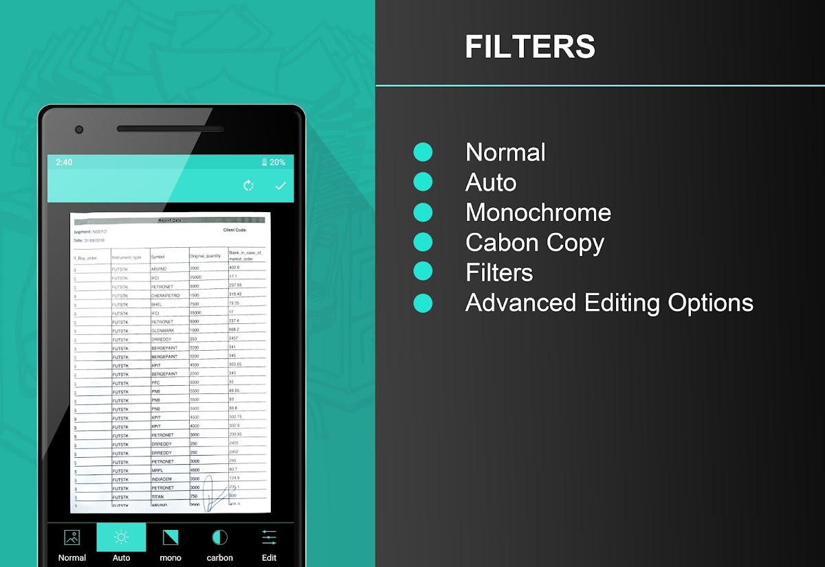 Сканер камеры превращает ваш мобильный телефон в невероятную сканера. использовать вашу камеру в качестве сканера высокого разрешения. сфотографировать любых бумажных документов и оцифровывать его. Легко поделиться отсканированные документы по электронной почте, облака принтер, факс или загружать их на облако хранения.