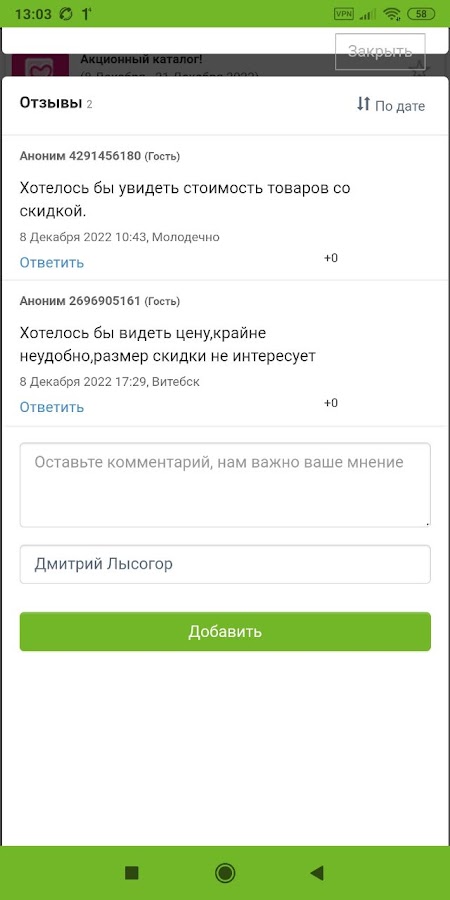 — Комментарии позволяют оставить свой отзыв о товаре, о его наличии и, конечно же, помогают узнать мнения других покупателей.