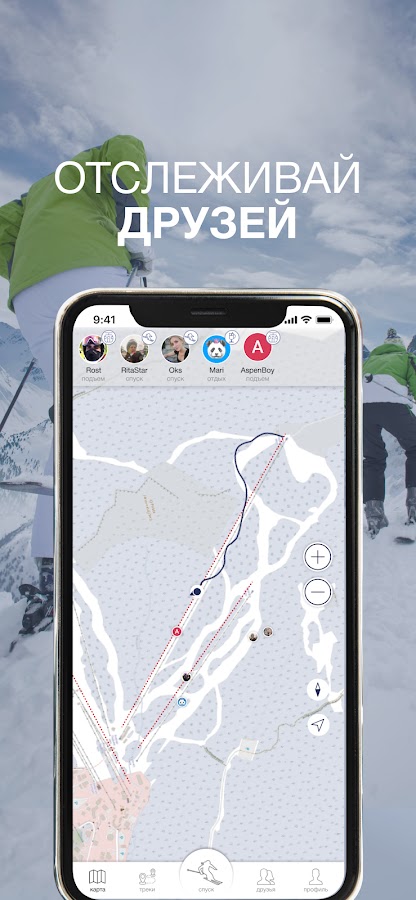 Катаетесь с друзьями или семьей? Отслеживайте их перемещение на карте курорта в режиме реального времени! С нашим трекером можно не бояться потерять близких на склоне или запутаться в трассах.