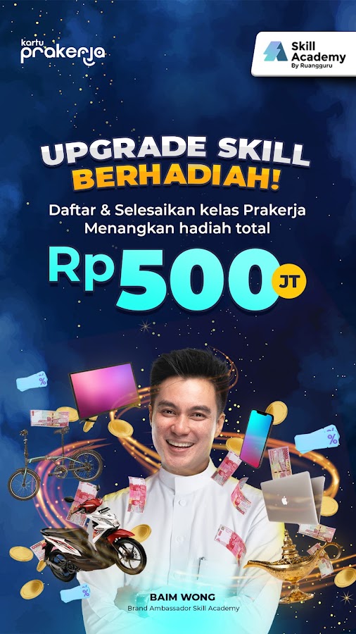 Представляем Skill Academy от Ruangguru. Сертифицированные приложения для онлайн-обучения и курсы в Индонезии. Сейчас есть различные онлайн-классы, которые вы можете выбрать в соответствии со своими интересами.