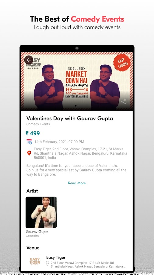 * Эксклюзивное партнерство с площадками и артистами: мы объединяем усилия с известными площадками, артистами и международными группами, чтобы организовать для вас самые захватывающие живые мероприятия в Индии.