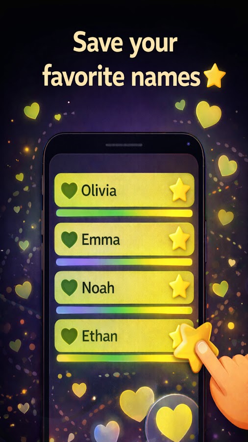 ⭐ Сохраняйте любимые имена в списке избранного, чтобы вспомнить позже