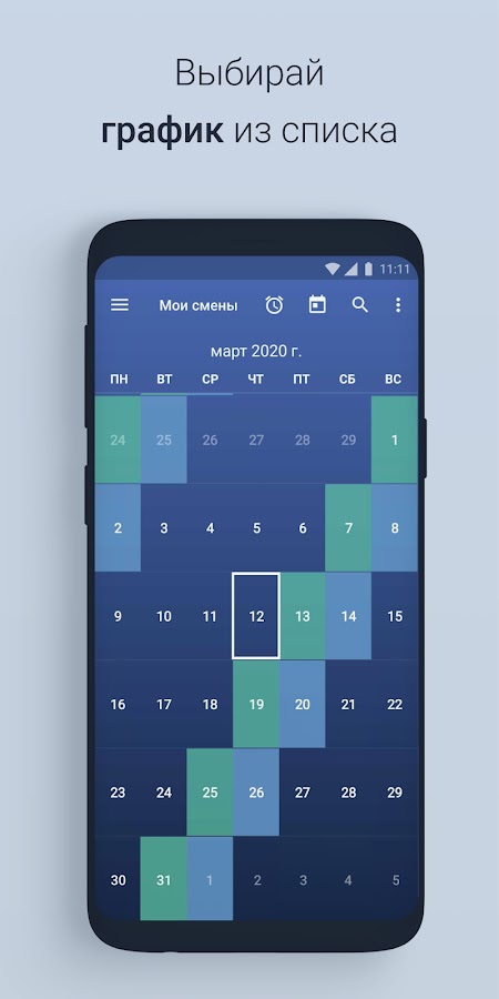 Если вы не работаете по скользящему графику, виджет приложения можно использовать как обычный календарь, или пользоваться цикличным будильником.