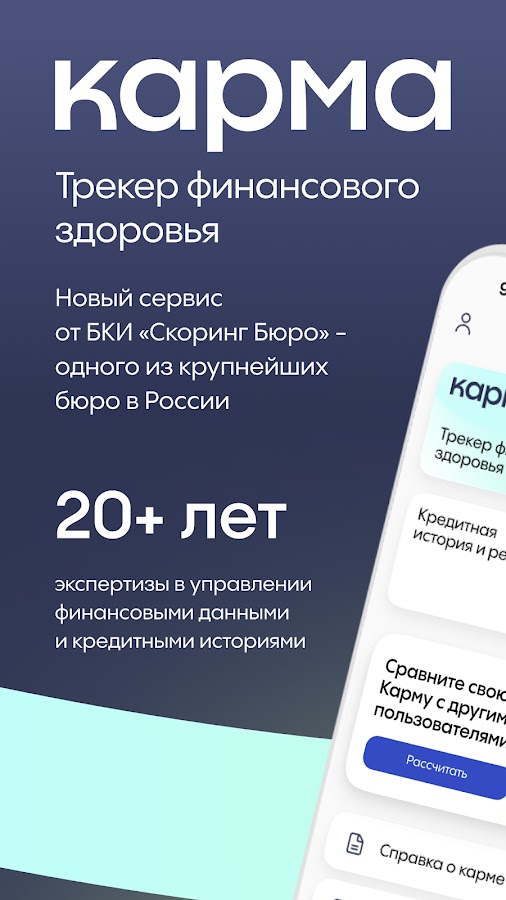 Скачайте приложение Карма от Скоринг Бюро для Android бесплатно - последняя версия (1.43) уже доступна для установки на ваш телефон или планшет.