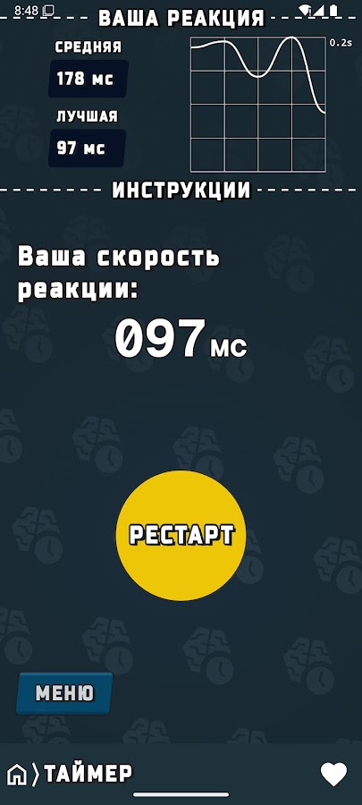 • Таймер реакции: Проверьте свою точность и скорость реакции. Остановите таймер как можно ближе к нулю!