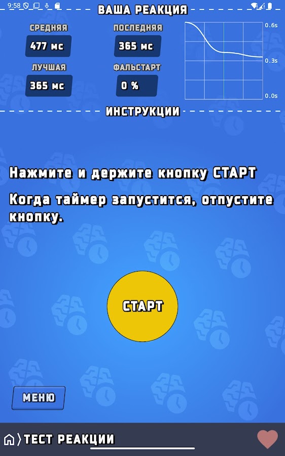 • Тест реакции: Узнайте, как быстро вы реагируете на стимулы.