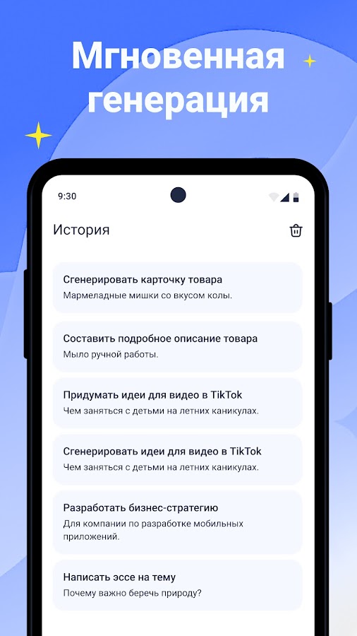 Sky — Нейросеть Текст. Приложение, созданное для копирайтеров, специалистов по SMM и всех, кто хочет писать текст быстро и эффективно. Этот чат GPT на русском на основе нейросеть текст умеет понимать и генерировать ИИ тексты в различных стилях: сочинение, бизнес план, проверка текста и многое другое…