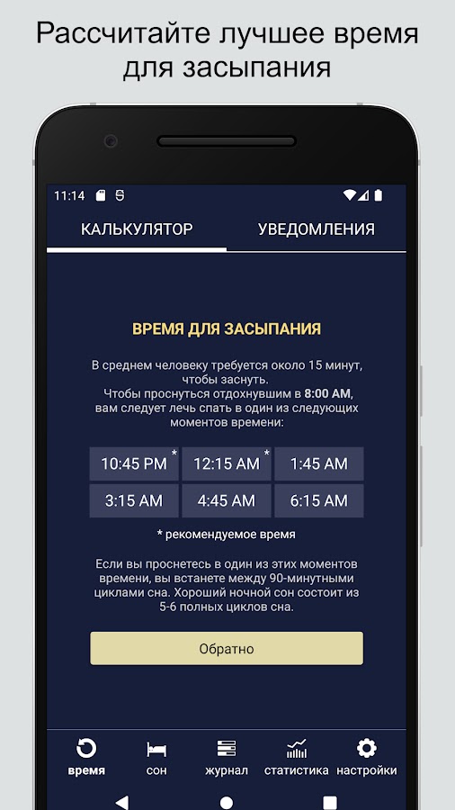 Скачайте приложение Sleep Calculator для Android бесплатно - последняя версия (1.2.129) уже доступна для установки на ваш телефон или планшет.