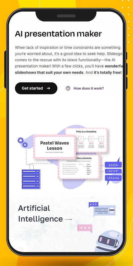 Это приложение Slidesgo PPT AI App Assistant содержит