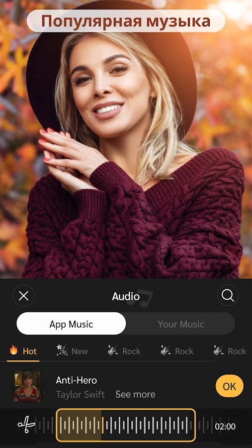 ✔ Добавьте музыку в слайд-шоу, легко выберите музыку, которую вы любите, чтобы добавить к видео.