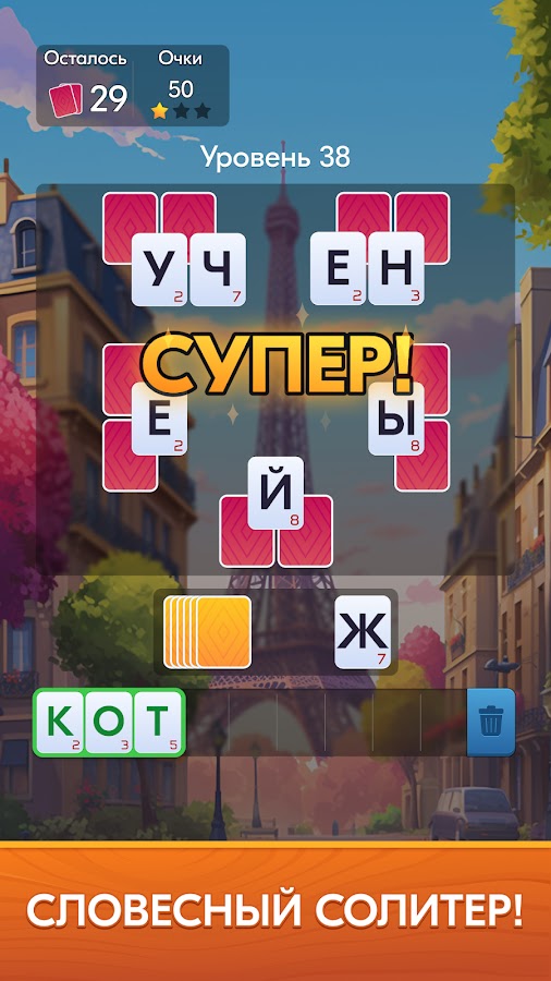 Скачайте игру Слова из Карт: Солитер для Android бесплатно - последняя версия (1.3.0) уже доступна для установки на ваш телефон или планшет.
