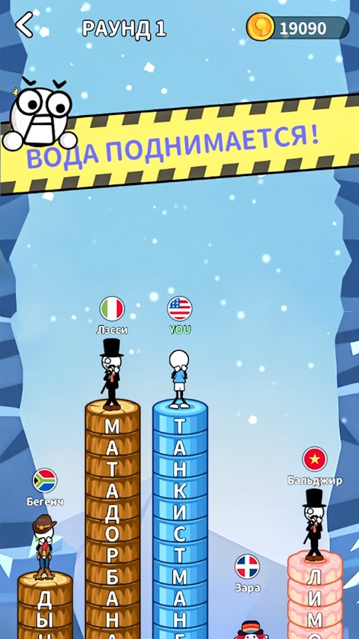 Следите за поднимающейся водой в захватывающих играх с поиском слов. Планируйте и рассчитывайте! Единственный способ выжить и победить, когда вода продолжает подниматься, — это победить свой ответ или умереть против противников, поскольку в этой напряженной игре на выживание с кроссвордами, которая проверяет ваши словесные навыки, есть только один победитель.