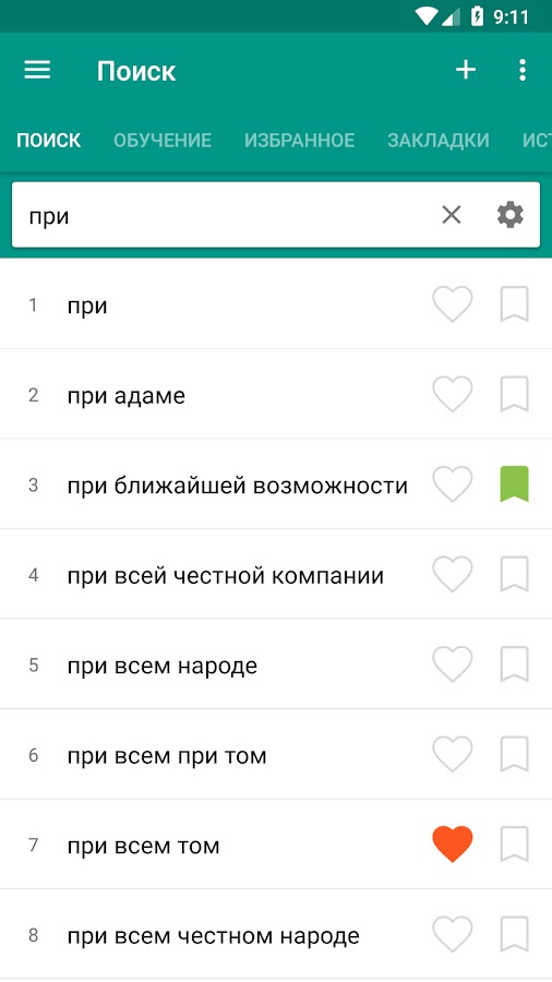• Вы можете добавлять отмеченные слова в список избранных.