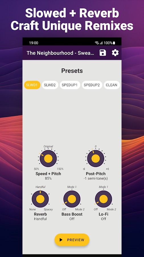 Не упустите возможность делать ремиксы, как никогда раньше. Начните свое звуковое приключение, где вы сможете поэкспериментировать с замедленной лофи-музыкой, ускоренными песнями и создать свой собственный уникальный звук, и все это с дополнительным блеском эффекта усиления басов.