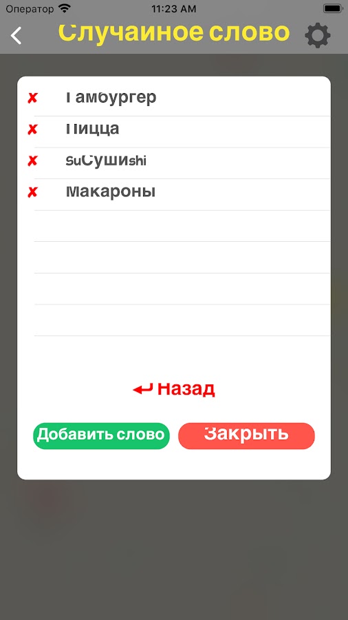 • Выбор имени или слова из ваших списков