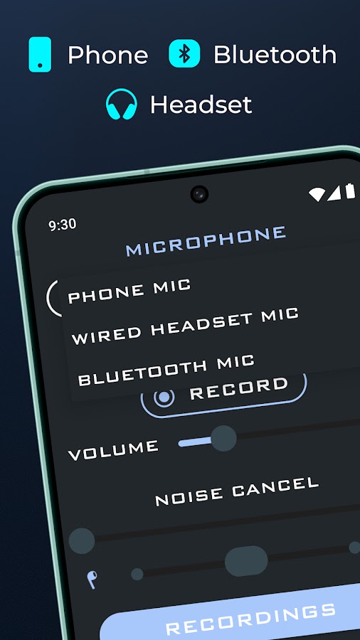 Вы можете использовать микрофон телефона или микрофон гарнитуры для прослушивания и записи.