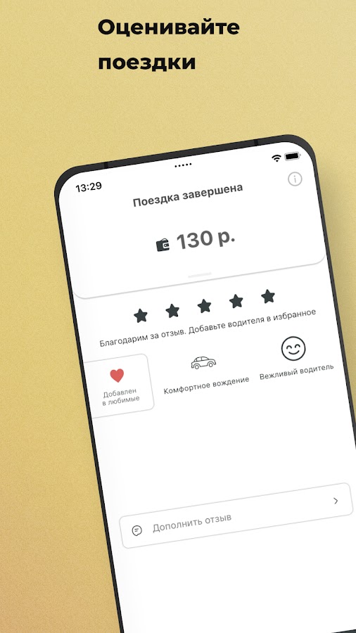 Поставьте оценку водителю, напишите отзыв или выберите реакцию из готовых шаблонов.