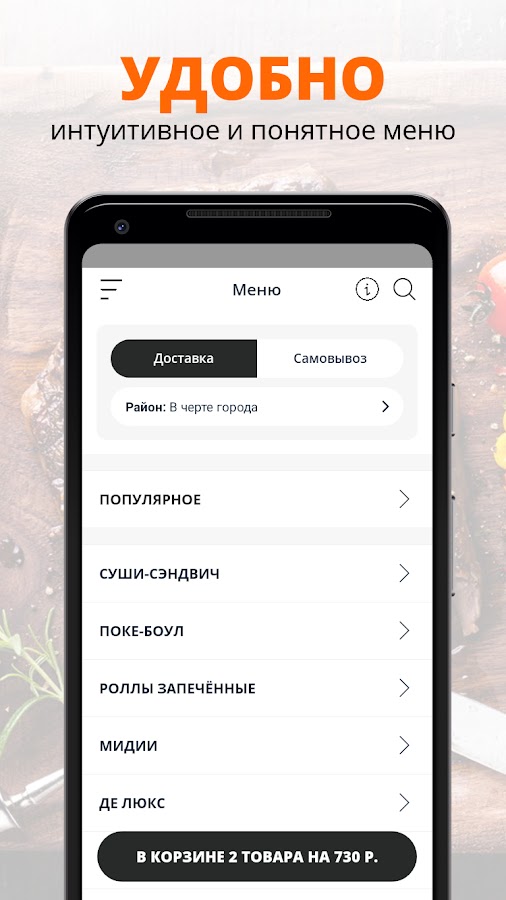 В приложении вы сможете посмотреть меню, быстро оформить заказ, отслеживать статус заказа, получать и применять бонусные баллы, смотреть историю заказов, узнавать о новинках и акциях! Скачивайте наше приложение и заказывайте вкусную еду всего в несколько касаний!