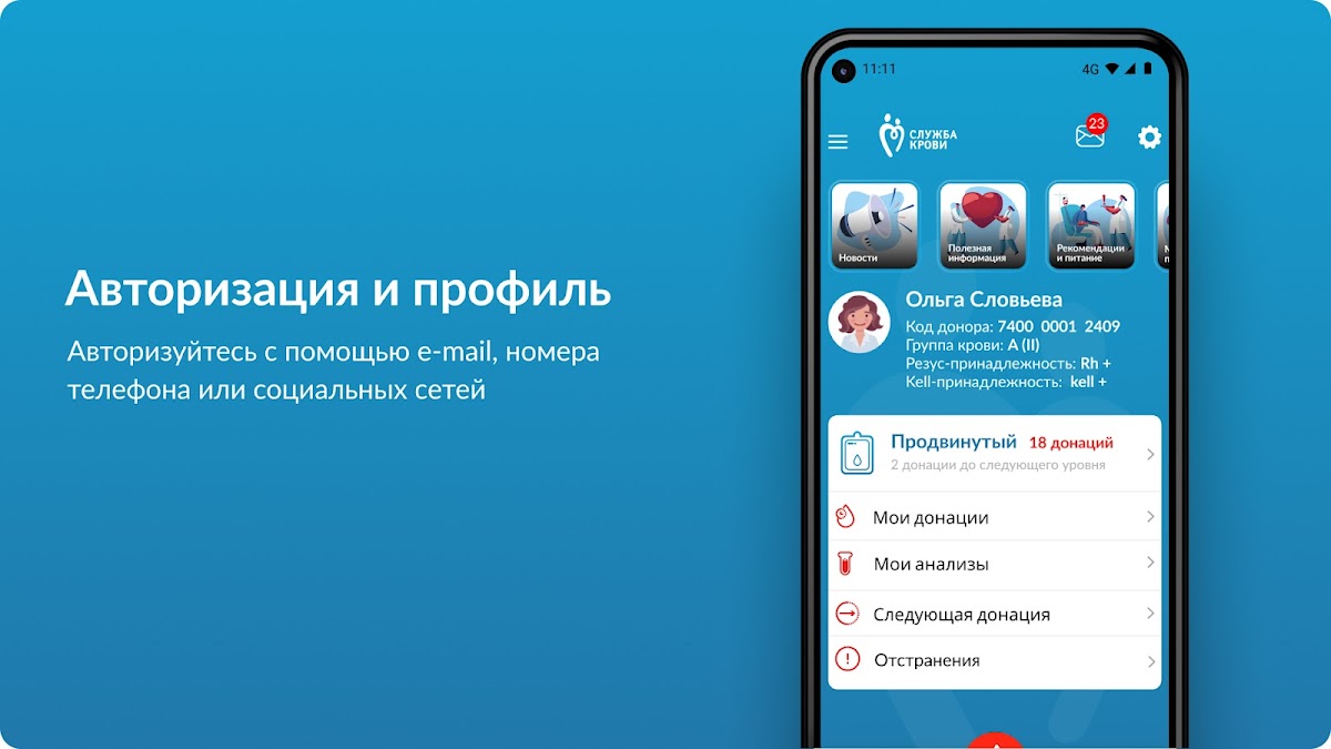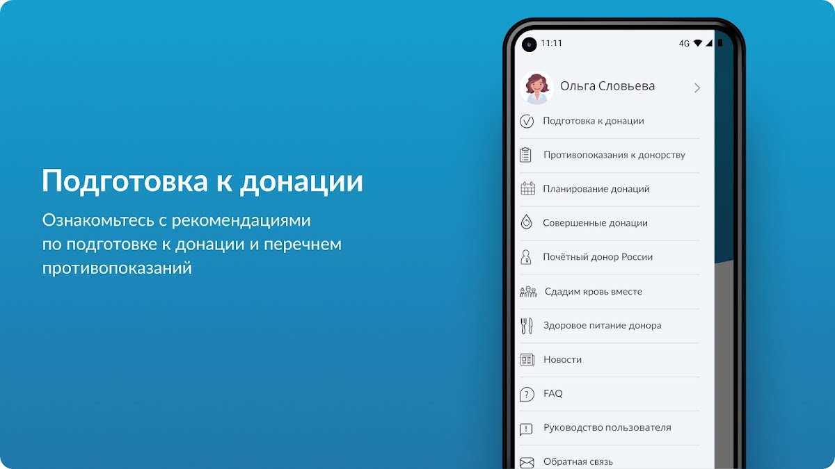 Пользователям доступен функционал планирования своих донаций, получение информации о результатах медицинского и лабораторного обследований, онлайн-консультация специалистов Службы крови.