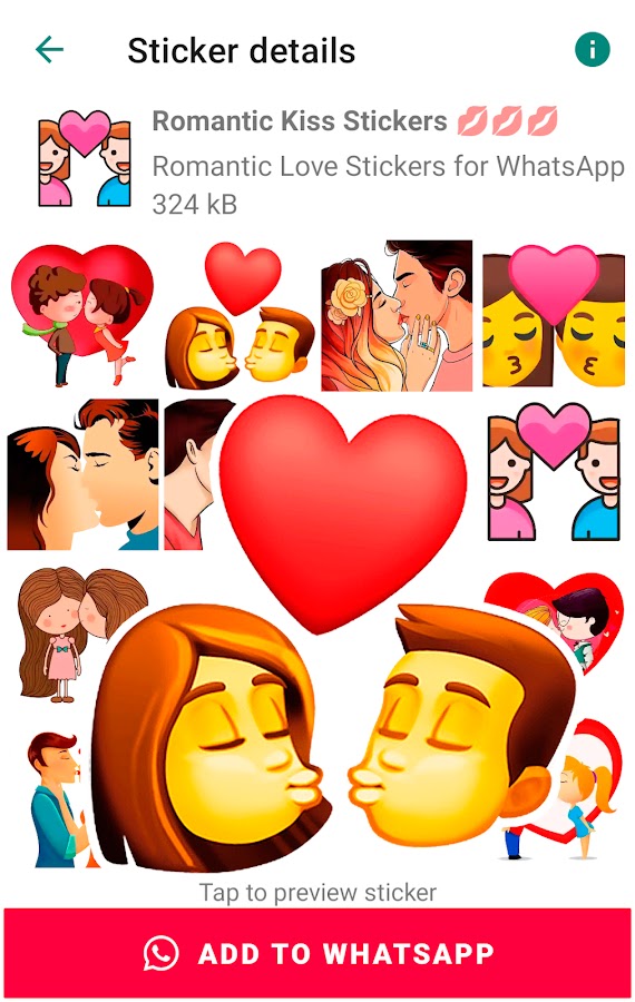 Включает новые стикеры, которые вы можете отправить любимому человеку: «Я люблю тебя», «Я скучаю по тебе», «Мне очень жаль», «Романтическая пара», «Любовные сообщения», «Цитаты о любви», «История любви». и еще больше милые любовные стикеры для ватсапа.