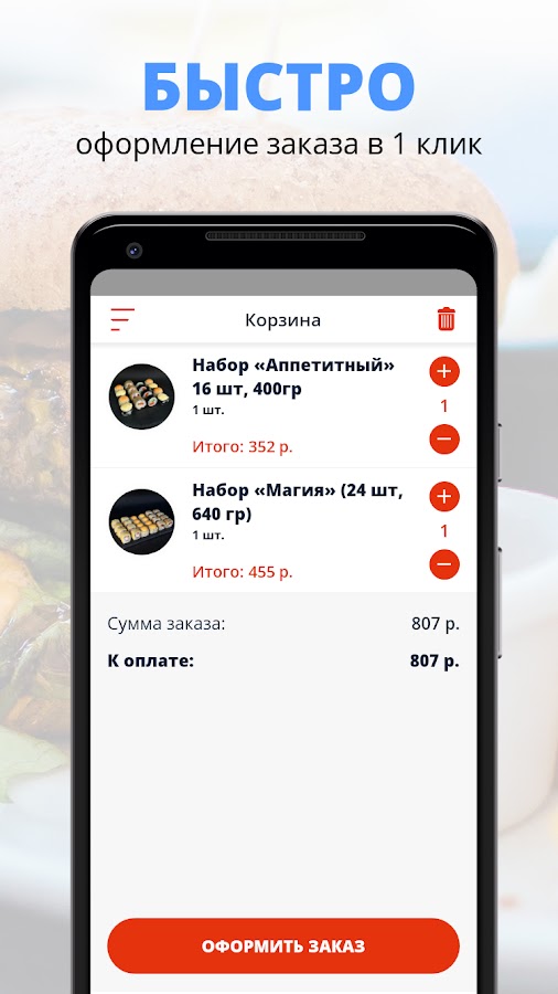 Скачивайте наше приложение, оформляйте заказ и наслаждайтесь любимой едой, где бы Вы ни были! Приятного аппетита!