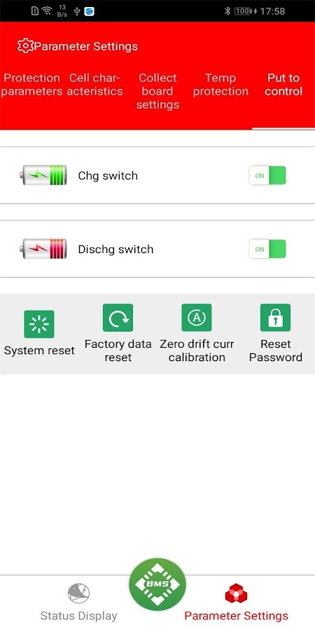 3. Установите и прочитайте параметры защиты аккумулятора. Пользователь устанавливает параметры и должен ввести пароль для изменения параметров;