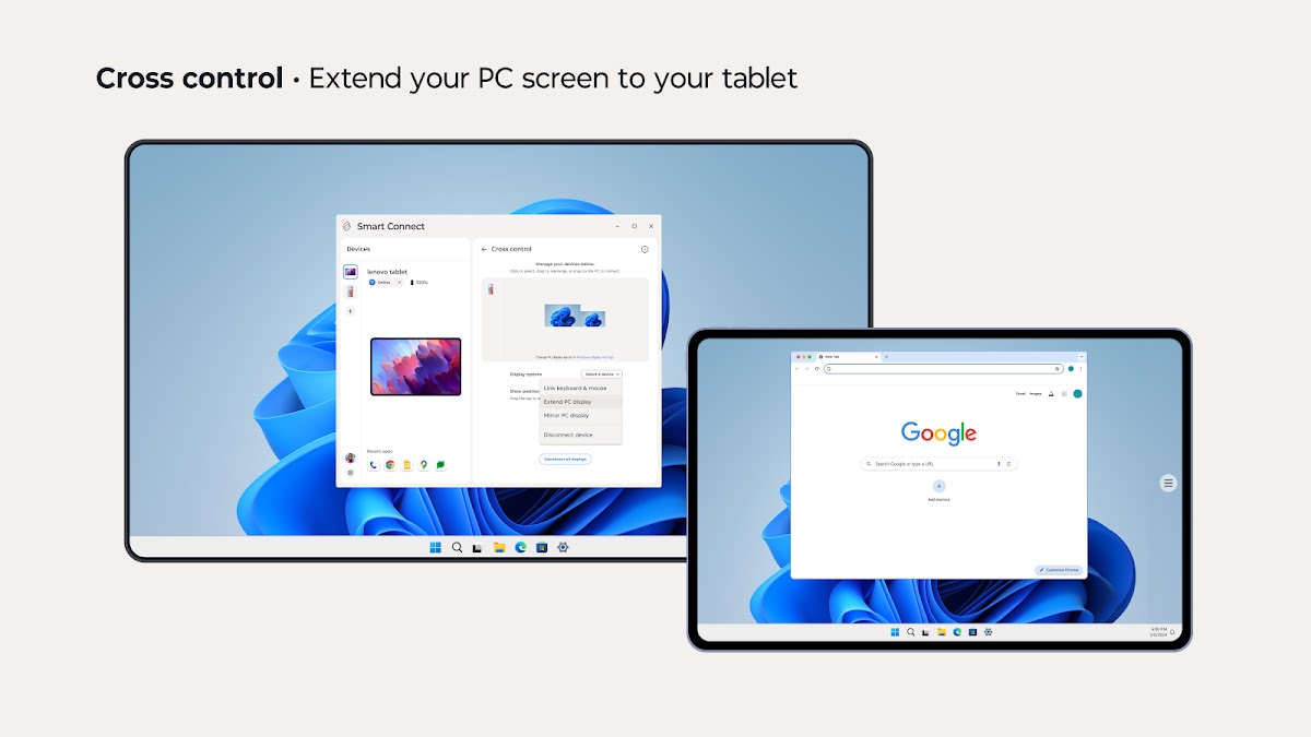 • Use Cross Control to extend or mirror your PC screen to your tablet.