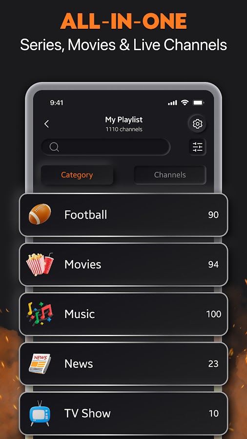 ✅ Смотрите прямые трансляции IPTV с помощью встроенного мощного IPTV-плеера.