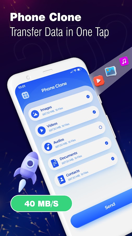 Smart data sharing apps send the data by using a direct wifi and hotspot connection. smart mobile data transfer app shifts the content in a secure way without data loss. The phone clone app makes it effortless to switch data to another phone while keeping all your data intact.