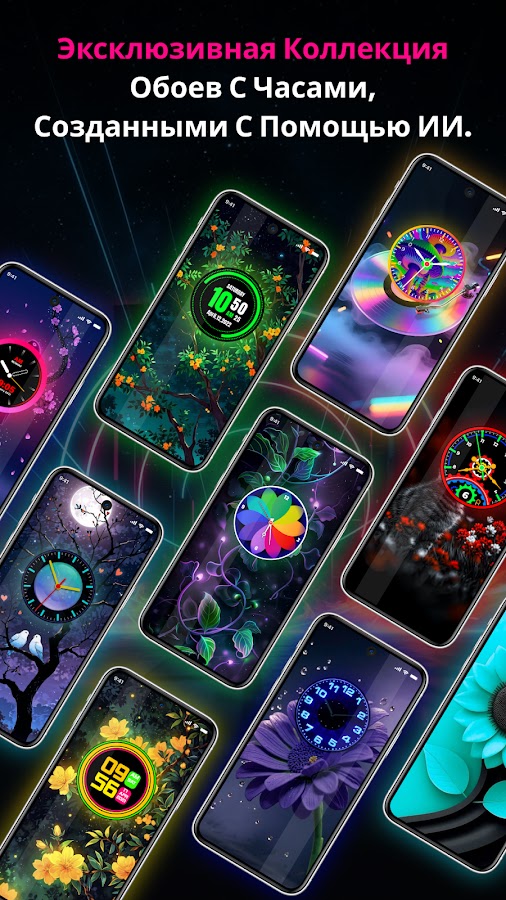 Преобразите дисплей своего телефона с помощью обоев с неоновыми часами, потрясающего и настраиваемого приложения с часами, которое добавляет светящиеся неоновые цифровые и аналоговые часы на ваш домашний экран и экран блокировки. Выбирайте яркие цвета, стильные шрифты и уникальный дизайн часов, чтобы создать привлекательный дисплей времени. Предпочитаете ли вы минималистичные светодиодные часы или анимированные неоновые часы, это приложение с неоновыми цифровыми часами предлагает идеальный способ выделить ваш экран.