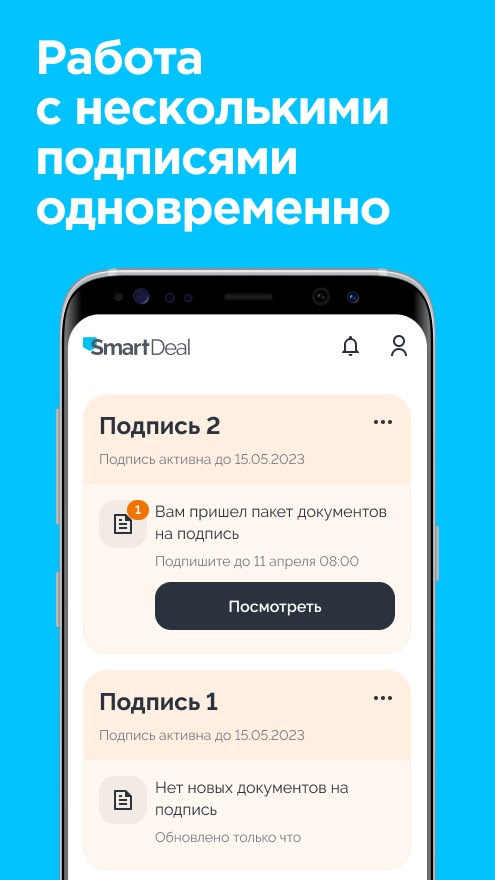 Вы сможете активировать электронную подпись в приложении, а потом легко получать и подписывать отправленные Вам документы.