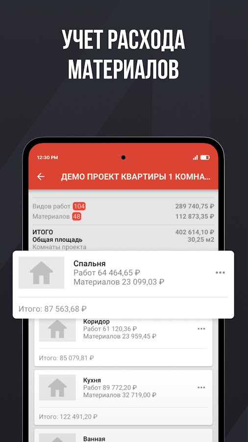 Создание и управление сметами: создавайте сметы на строительные работы, проектирование домов и квартир, а также отслеживайте финансовые затраты.