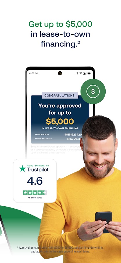 Нужно прямо сейчас? Легко подать заявку в приложении Snap Finance на получение кредита с правом выкупа до 5000 долларов США. Получите решение за считанные секунды. Для подачи заявки не требуется кредит.