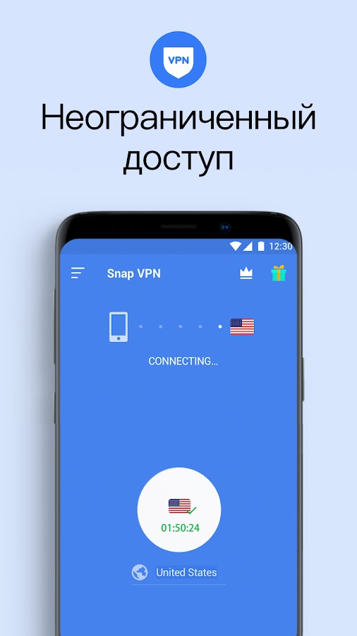 Snap VPN — супер быстрый, безопасный и неограниченный бесплатный VPN-прокси для офиса, дома, школы или заграничных путешествий, был одобрен и установлен более чем 50 000 000 пользователей системы андроид.