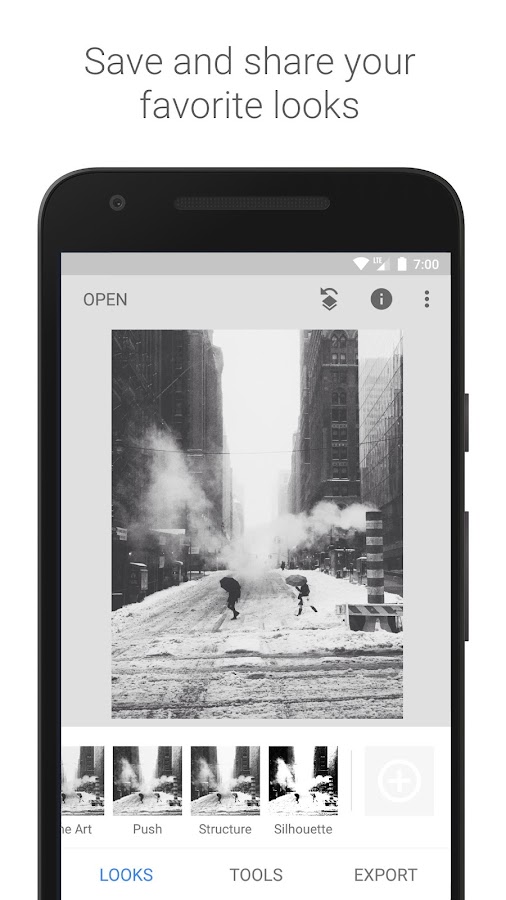 Скачайте Snapseed для Android и получите полный набор инструментов для обработки фотографий в своём смартфоне. Приложение позволяет сохранять собственные наборы настроек — достаточно создать стиль один раз, чтобы применять его к новым снимкам в пару касаний. Регулярные обновления от Google добавляют новые фильтры и расширяют возможности, сохраняя при этом интуитивно понятный интерфейс. Snapseed остаётся одним из немногих редакторов, где профессиональные функции сочетаются с удобством повседневного использования.