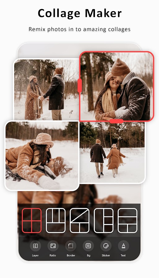 • Создание фотоколлажей: овладейте искусством создания коллажей с помощью наших простых в использовании функций и безграничных возможностей.