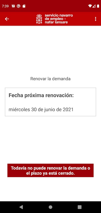 Это приложение позволяет только соискатель продлений активированных в Наварре и высоком статусе. карты не могут быть возобновлены в отпуске или приостановлении или разрешений в ожидании возобновления работы. В этом случае, необходимо пойти в агентство по трудоустройству.