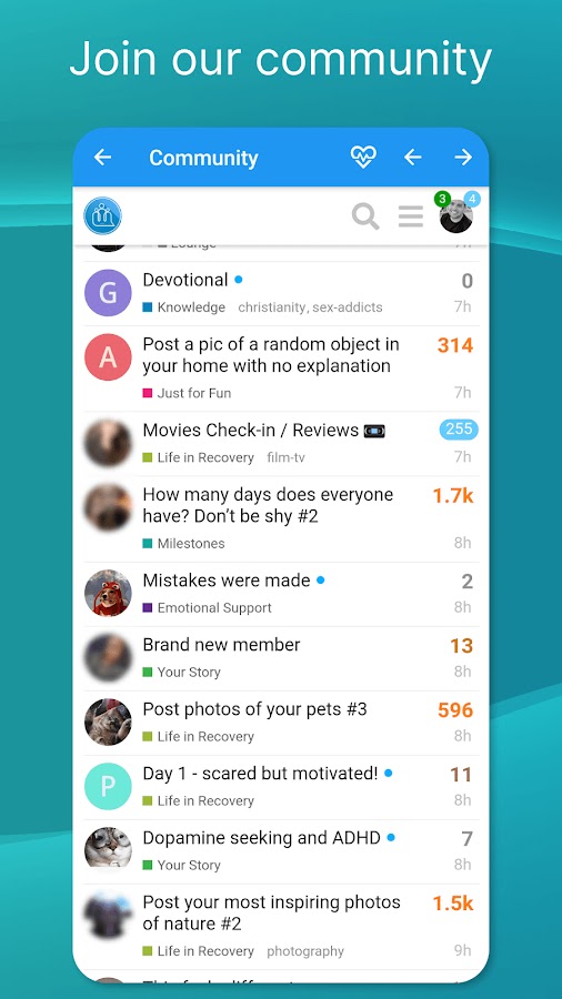 Помимо счетчика чистого времени, трезвое восстановление является основой нашего сообщества. Любой может присоединиться и поделиться. Посмотрите, что другие говорят о таких темах, как употребление алкоголя и алкоголизм, злоупотребление психоактивными веществами или наркотиками. Добавьте свою собственную историю и распространите трезвость.