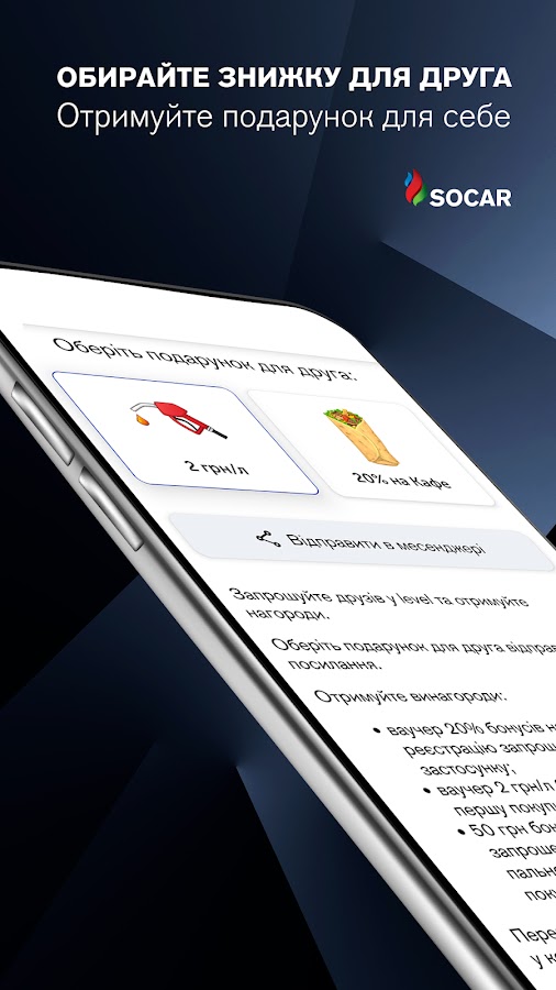 • Получать персональные скидки и бонусы на топливо и товары в виде ваучеров;