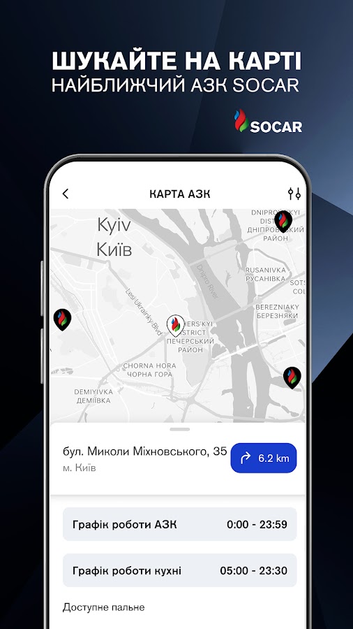 • Узнать всю необходимую информацию об АЗК SOCAR и их услугах;