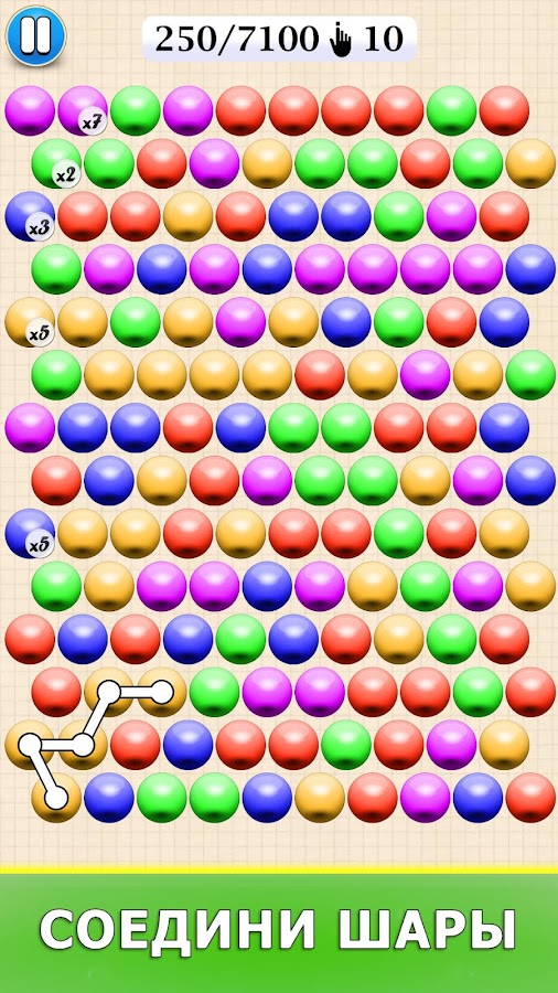 — Нажми на экран и соедини шары одного цвета в цепочку.