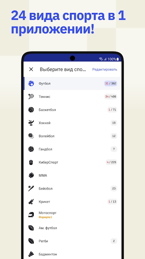 Воспользуйтесь лучшим приложением с результатами в реальном времени – Sofascore! Здесь вы получите все результаты, спортивную статистику и мир спортивного азарта! Независимо от того, являетесь ли вы ярым фанатом спорта или серьезным фэнтезийным менеджером. У нас есть всё: от простых результатов в реальном времени до подробной статистики и детального анализа игроков. Мы охватываем 25 видов спорта (от футбола и баскетбола до хоккея и ММА), более 5000 лиг и турниров.⚽🏀🎾🏈