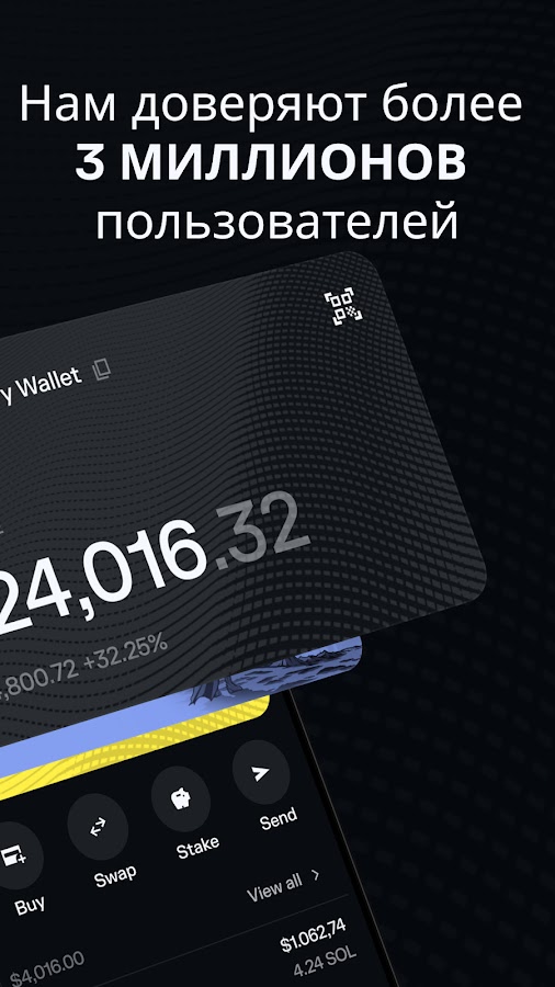 💳 Универсальное приложение и криптокошелёк для покупки, хранения и обмена крипты, а также для управления токенами и NFT на Solana.