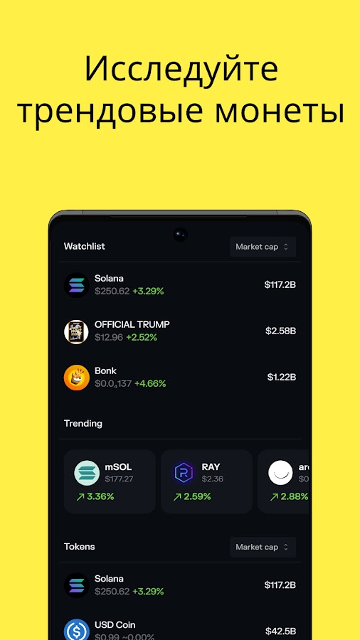 🔐 Безопасно исследуйте, торгуйте и управляйте более чем 3 миллионами токенов и мемкоинов. C лёгкостью подключайтесь к вашим любимым Web3-приложениям и взаимодействуйте с NFT-сообществами.