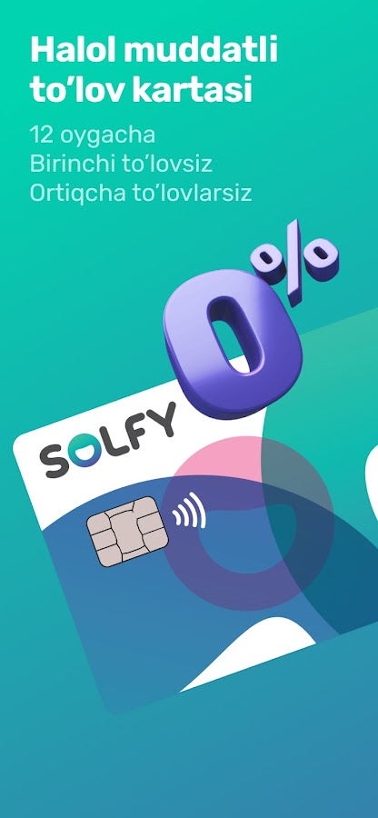 Solfy muddatli to’lov kartasi yordamida muddatli to’lov shartlari bilan hamkorlarning keng tarmoqli do’konlaridan: oziq-ovqat mahsulotlaridan tortib qurilish materiallarigacha, texnikadan kiyim-kechak va poyabzallargacha, restoranda ovqatlanishdan tortib ta’til harajatlarigacha istagan narsangizni xarid qilishingiz mumkin.