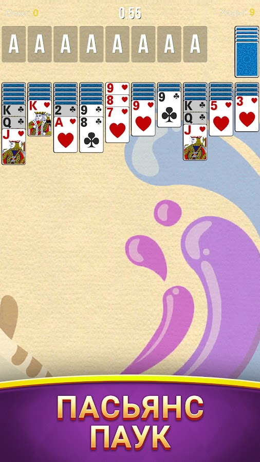 — Пасьянс Паук — возможность сдавать карты в пустые ряды